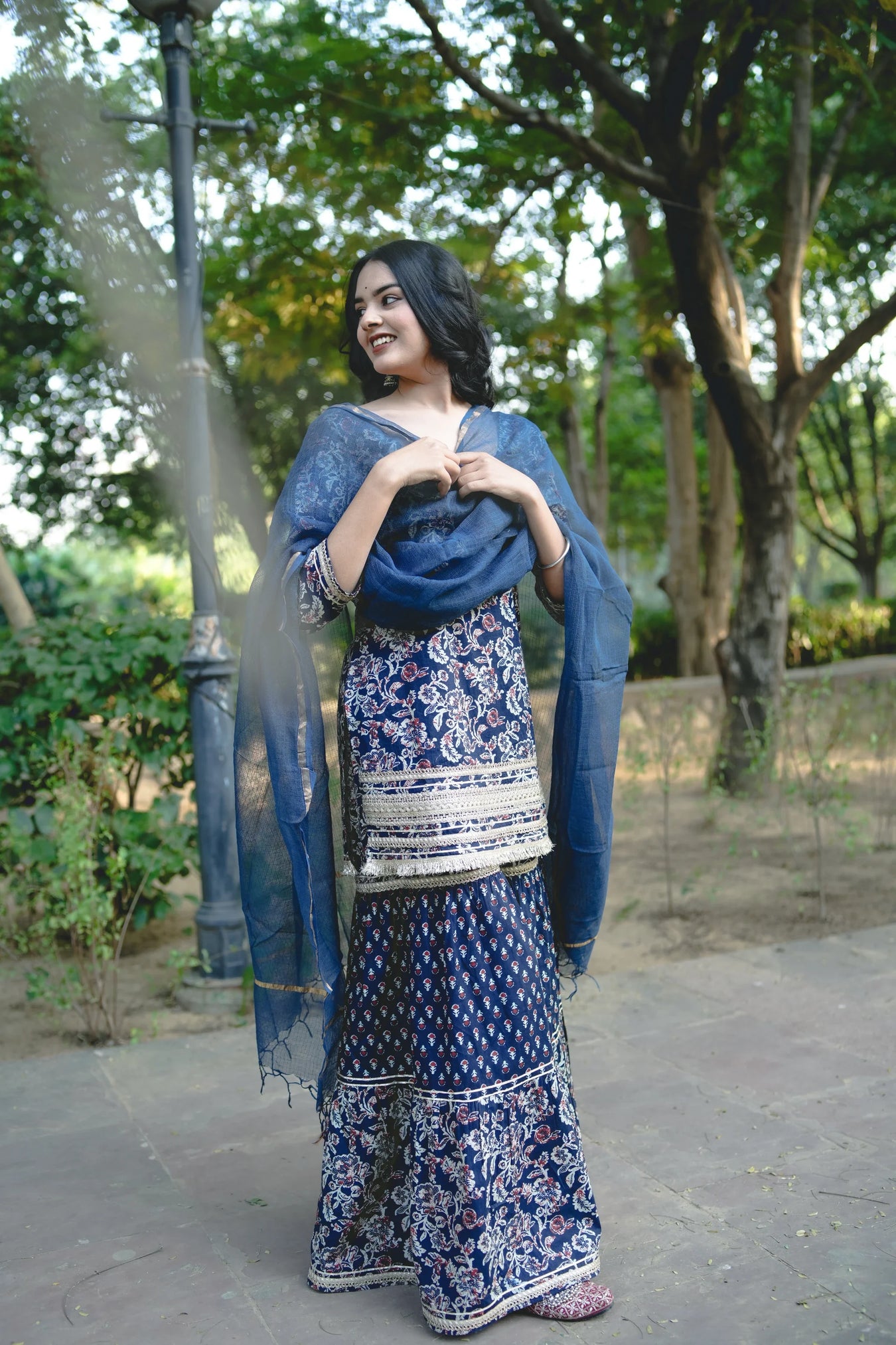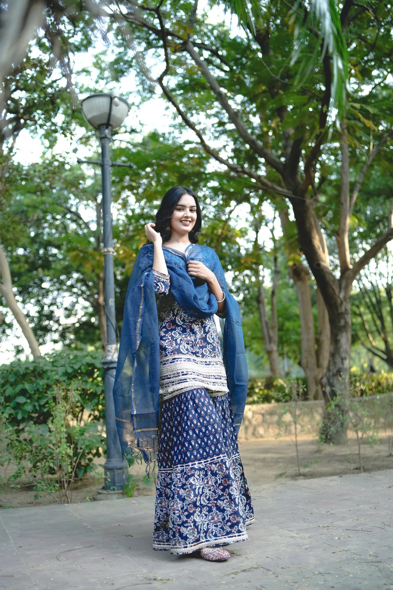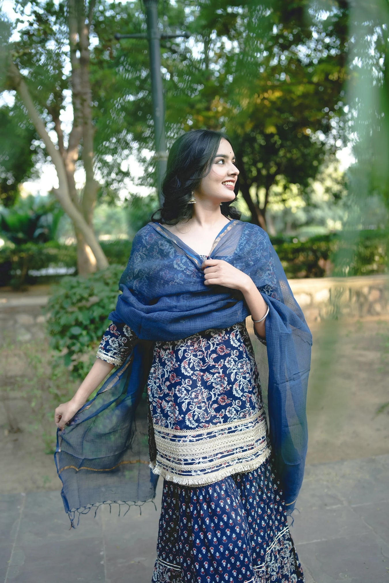 Experience refined ethnic fashion with this exquisite three-piece kurti set designed for the discerning woman. Constructed from breathable cotton, the kurti showcases a captivating floral print with a flattering square neckline and 3/4 sleeves. Ornate lace embellishments cascade across the garment, creating depth and sophistication. The accompanying sharara, woven from airy kota doriya fabric, ensures comfort without compromising on elegance. The coordinating dupatta completes the ensemble, offering versatility for layering and styling. Ideal for festive celebrations, weddings, and special occasions where traditional grace meets contemporary sensibility.