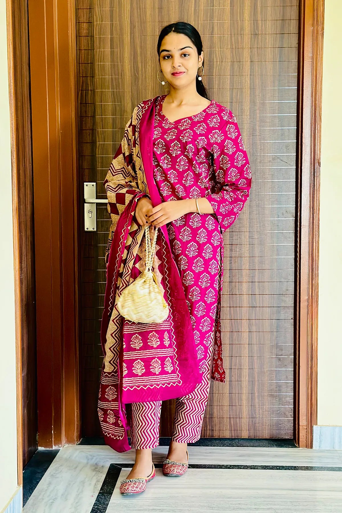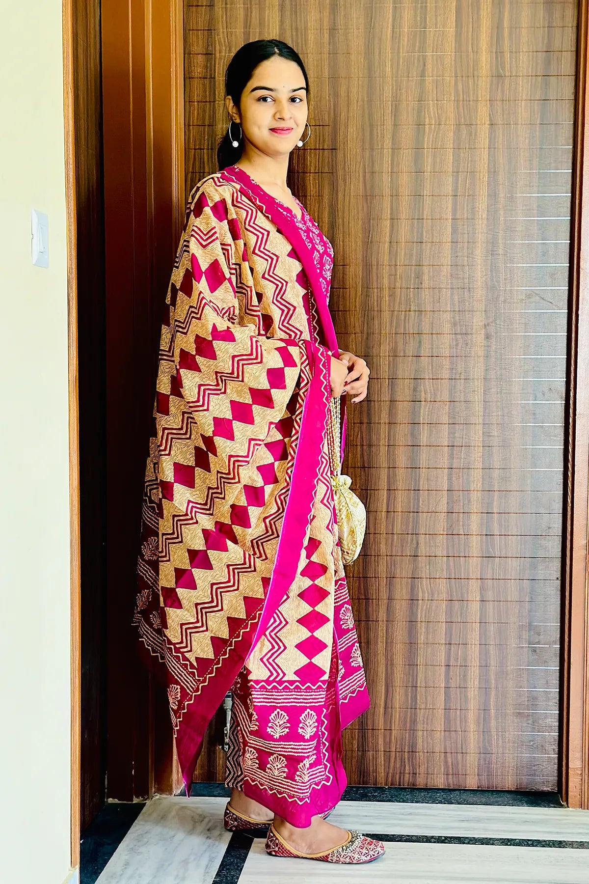 Cotton kurta with matching pants and statement dupatta, blending tradition with refined detailing.