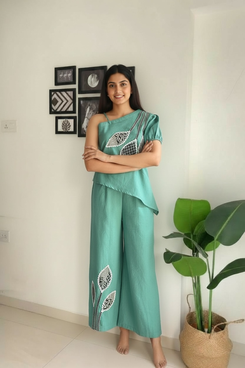 Elevate your wardrobe with this sophisticated aqua embroidery co-ord set, designed for the modern woman who values both style and versatility. The intricate embroidery detailing adds an elegant touch, while the coordinated two-piece silhouette offers effortless styling for any occasion. Crafted with attention to detail, this set transitions seamlessly from casual gatherings to semi-formal events. The aqua hue complements various skin tones and pairs beautifully with minimal accessories. Perfect for those seeking refined, contemporary fashion that doesn't compromise on comfort or quality.